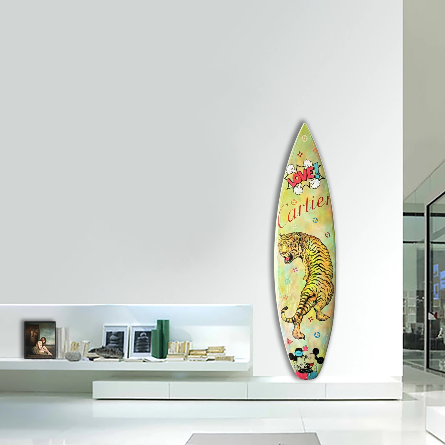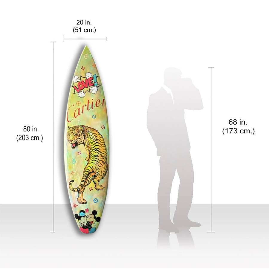 One-of-a-kind Pop Art Original Painting on Surfboard by Gardani, hand signed by the Artist front and back, comes with official Gardani Certificate of Authenticity with a unique dollar bill sequence as a registration matching number of that Artwork/sale.